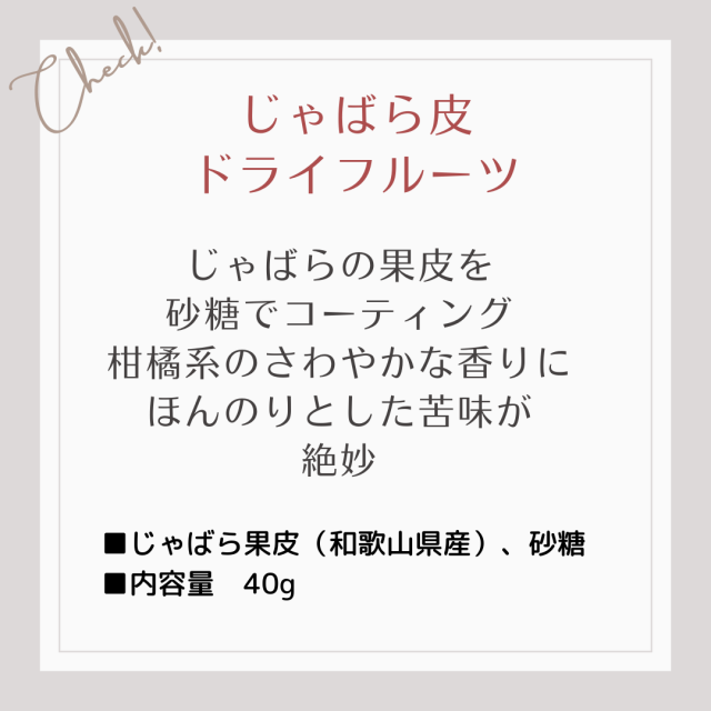 ところが、味にクセがあり食べにくいということで、お子様から高齢者まで美味しく食べていただくために、じゃばらの果皮をてんさい糖でコーティングしました。